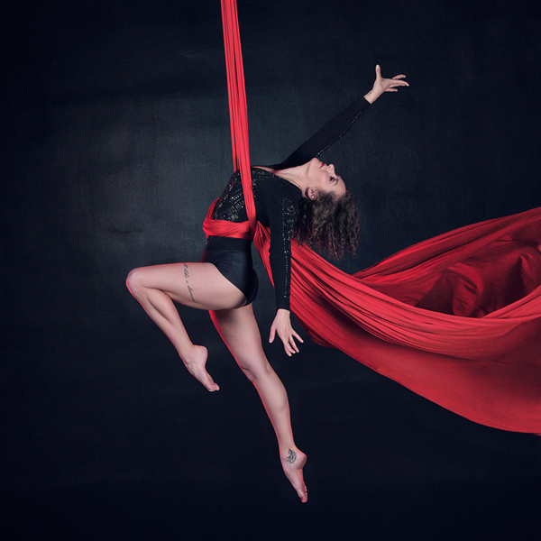 She has been involved in sports since 2016, when she started her journey with pole dance. After two years, she craved more adrenaline and tried her hand at aerial silks at Aerial Dance Studio. Progress came quickly, and it led to her joining the Aerial Dance Studio team, where she began performing commercially on silks and aerial hammocks. She also participated in the International Air Athletics Association competitions (2019), winning gold in the Aerial Silks Professional A category. She began working as a newly certified instructor in 2019, having completed the instructor course under the careful guidance of Magdalena Sztencel. She believes that the devil is in the details, which is why she focuses on proper preparation for training.
