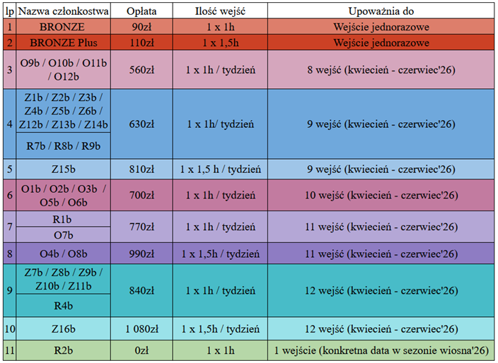Wysokość składki na sezon WIOSNA’26 (04-06.2026)